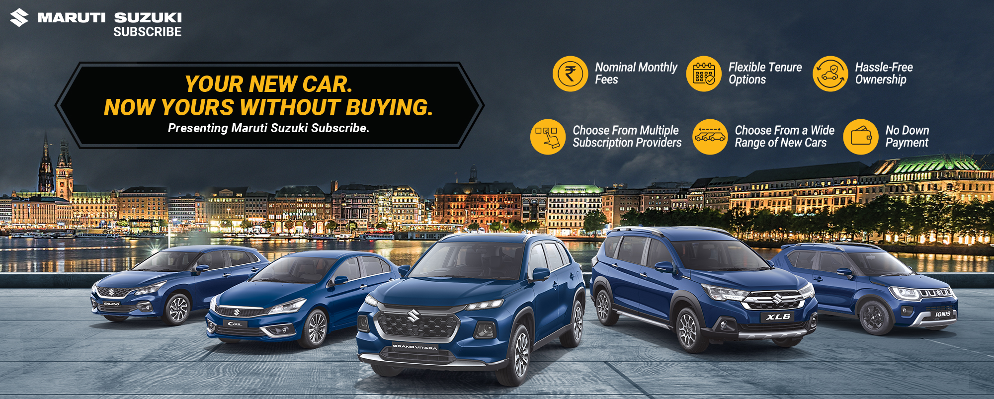 Maruti Suzuki Subscribe enables all customers to enjoy driving their preferred Maruti Suzuki cars without having to deal with all the financial responsibilities that come with owning a car.All you need to do is opt for a monthly subscription plan at a fixed monthly fee, which includes the routine maintenance and insurance costs, and choose a flexible tenure. At Pillai & Sons in, , Trichy, all Hatchback, Sedan, SUV, the MUV models line-up includes Baleno, Invicto, EVitara, Jimny, Ciaz, Ignis, Fronx, Grand Vitara, XL6. Here, you will enjoy Maruti Suzuki Subscribe benefits such as: